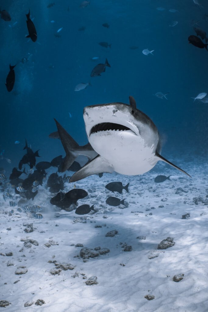 Fuvahmulah isn’t just another dive destination. It’s one of the only places in the world where you can dive with tiger sharks every single day in clear, open ocean conditions. But that’s only part of the story. This island sits completely on its own in the deep Indian Ocean, and because nothing shelters it, all kinds of pelagic life pass right by its reefs. Alongside the tiger sharks, you may encounter hammerheads, thresher sharks, oceanic manta rays, whale sharks and a wide range of other species that make this place so unique.